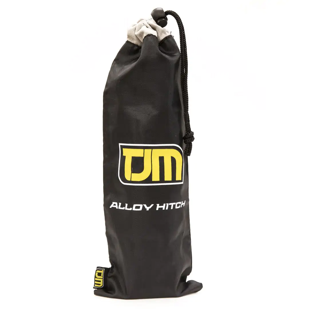 TJM Alloy Hitch (Extended Length). The TJM Alloy Hitch is available in 2 lengths, is precision CNC machined from T6 6061 aluminium, finished in a smooth a grey anodised finish. The TJM Alloy Hitch with it’s large rounded corners is designed to take soft shackles as well as steel bow shackles, weighing 2.5 times lighter than steel hitch of the equivalent size & comes supplied with a handy storage bag.