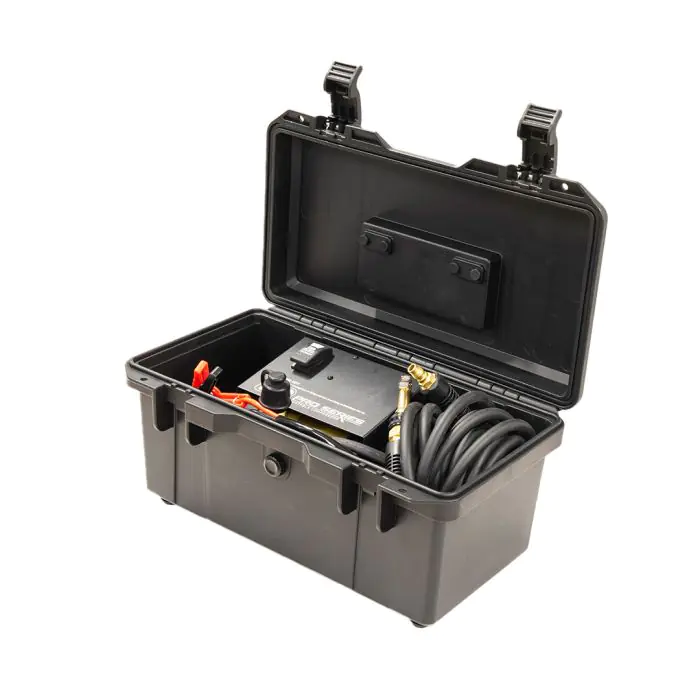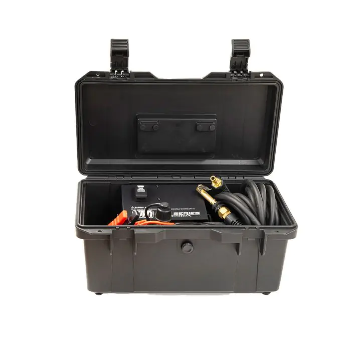 Introducing the TJM Pro Series Portable Compressor: your on-the-go air compression companion. Encased in a robust storage case, it provides power, reliability, and convenience wherever you go. With an 86LPM air flow rate and an integrated tank for efficiency, the convection cooling system (patent no. 2019202008) ensures optimal performance under demanding conditions. The compressor offers peace of mind with a 100% duty cycle, thermal cut-out, and a 2-stage air filter for clean air input, supported by a 3-year warranty. Complete with essential accessories, including a 6.0m air hose, 2.0m power cable, and 0.4m battery clamp with 50A Anderson plugs, the Portable TJM Pro Series Compressor is your solution for air compression on the move, whether for off-road adventures or everyday tasks.