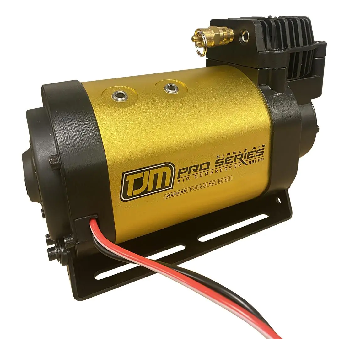 Stay ahead of the pack with a TJM Pro Series Single Air Compressor. It delivers an imposing 86 litres-per-minute for speedy inflation, which is made possible thanks to its powerful internal componentry and advanced convection cooling system (patent pending). Each TJM Pro Series Single Air Compressor’s exterior is constructed from a careful combination of cast and extruded aluminium. This seamless anodised exterior provides superior protection for its oversized internals, hard-anodised cylinder bore and Teflon-impregnated piston seal. The Pro Series Single features five unique mounting angles for easy access in your 4×4 – whether that’s in your engine bay, vehicle cab or drawer system – while it includes multiple tyre inflation points, auxiliary ports and a Pressure Cut-Out switch for exceptional utility. TJM Pro Series Airline Kit (013COMPAKNAA) not included.