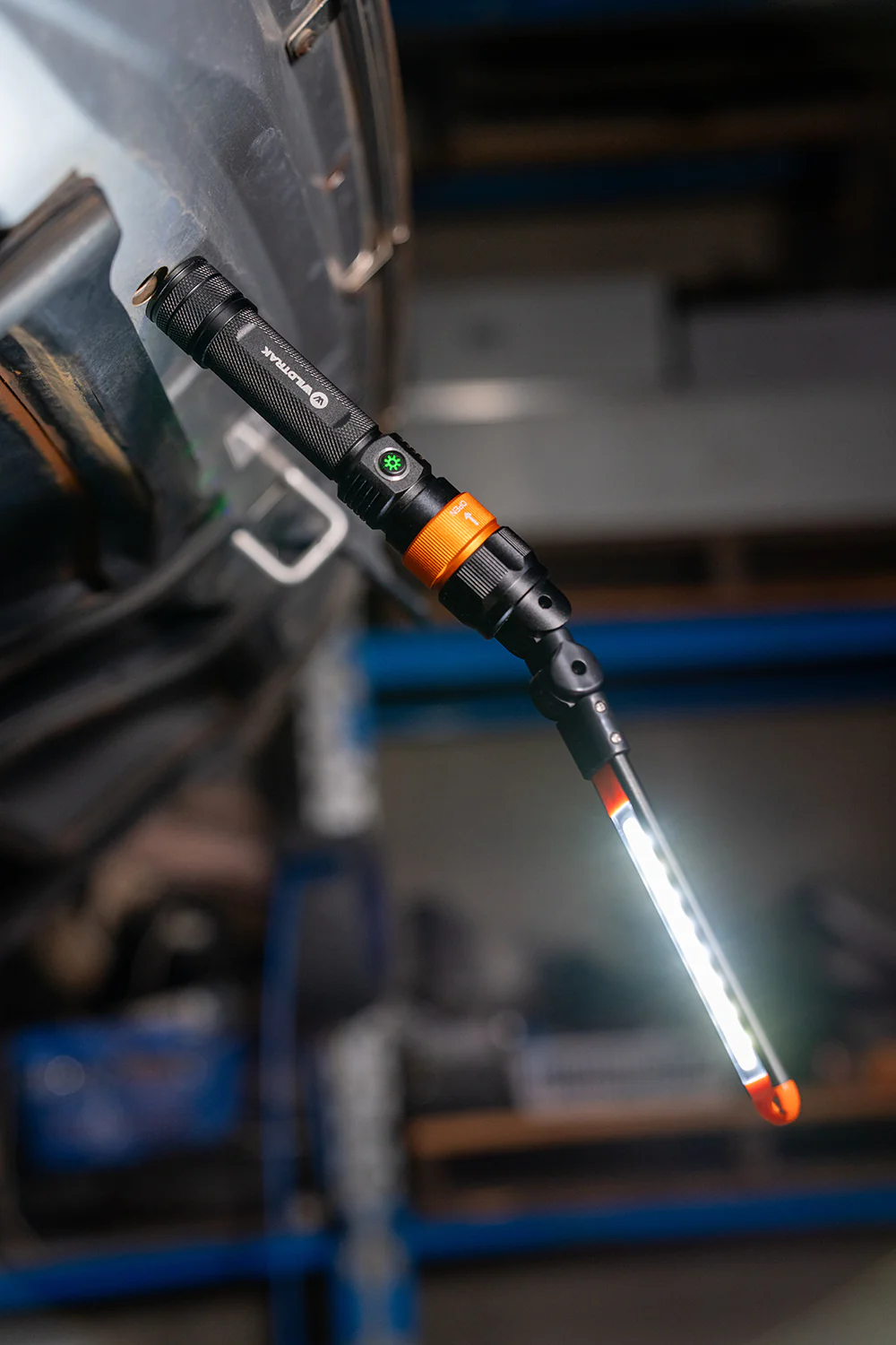 • 3 Interchangeable Heads: Flashlight, Worklight, and Flexible Gooseneck Head